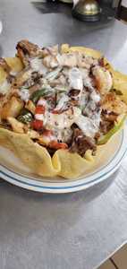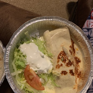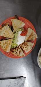 Two big tortillas stuffed with cheese and your choice of meat, cut into triangles. Served with lettuce, sour cream, tomatoes, bell peppers and onions.