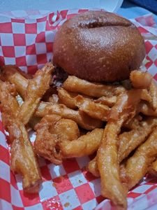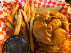 ALL BURGERS AND CHICKEN SANDWICHES COME WITH OUR SHREDDED LETTUCE. A GARDEN WITH TOMATO, RED ONION, AND PICKLE SLICES IS AVAILABLE UPON REQUEST. BURGERS ARE COOKED TO YOUR SPECIFICATIONS. EACH SANDWICH COMES WITH A SIDE OF YOUR CHOICE AND A PICKLE SPEAR. GRILLED CHICKEN TENDERS MAY BE SUBSTITUTED FOR ANY BURGER EXCEPT FOR BOB'S LIL BURGER.